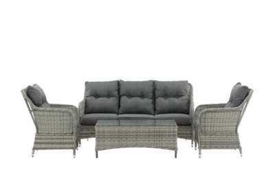 „Nettan” – puiki modernaus ir stilingo dizaino sofų grupė jūsų kiemui ar terasai! Šią sofų grupę sudaro kampinė sofa, kuri yra modulinė, todėl ją su 3 sėdimomis vietomis ir kampine dalimi galima išdėstyti keliais skirtingais būdais taip, kaip norite.