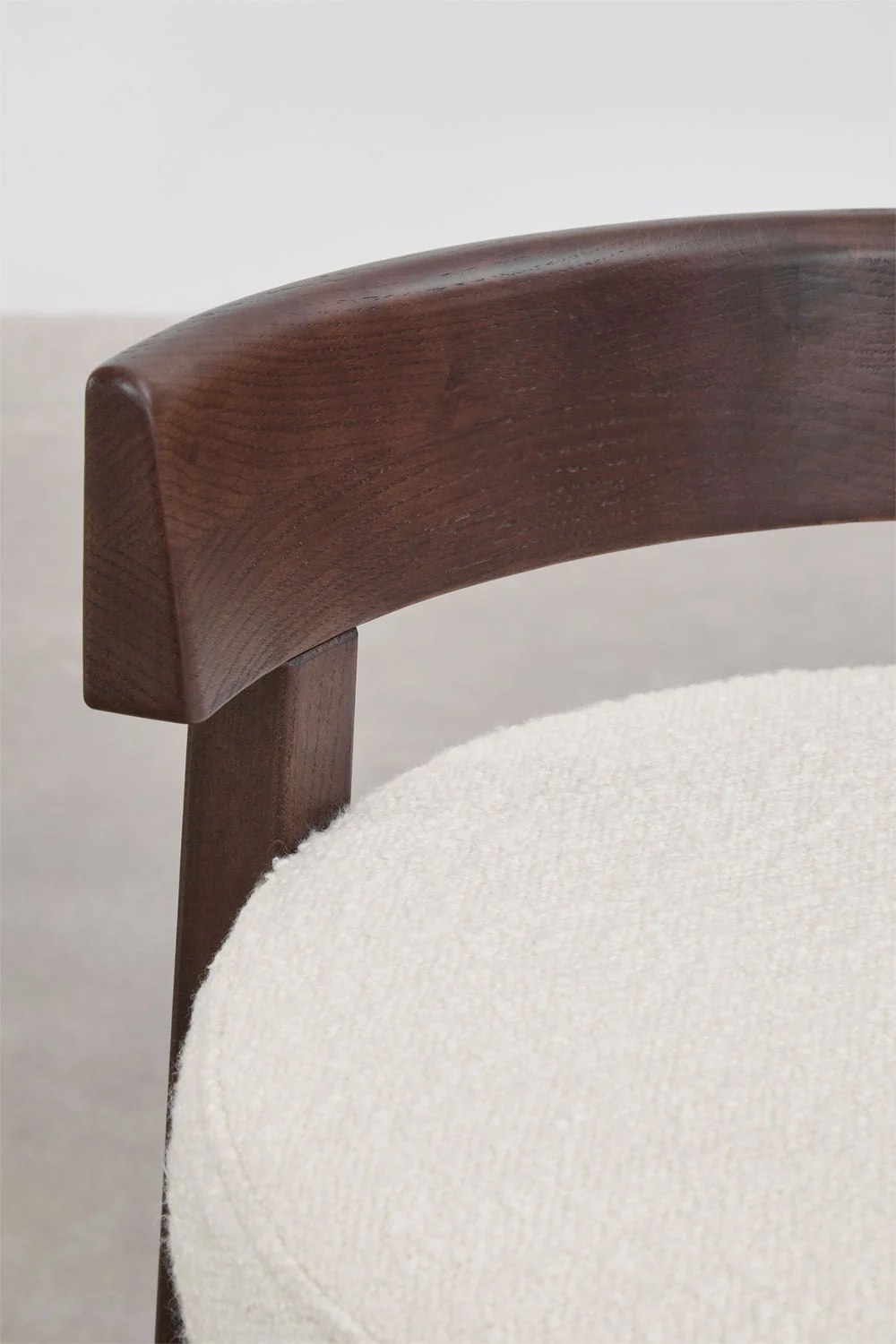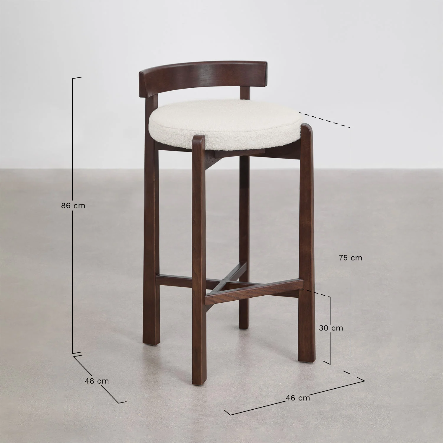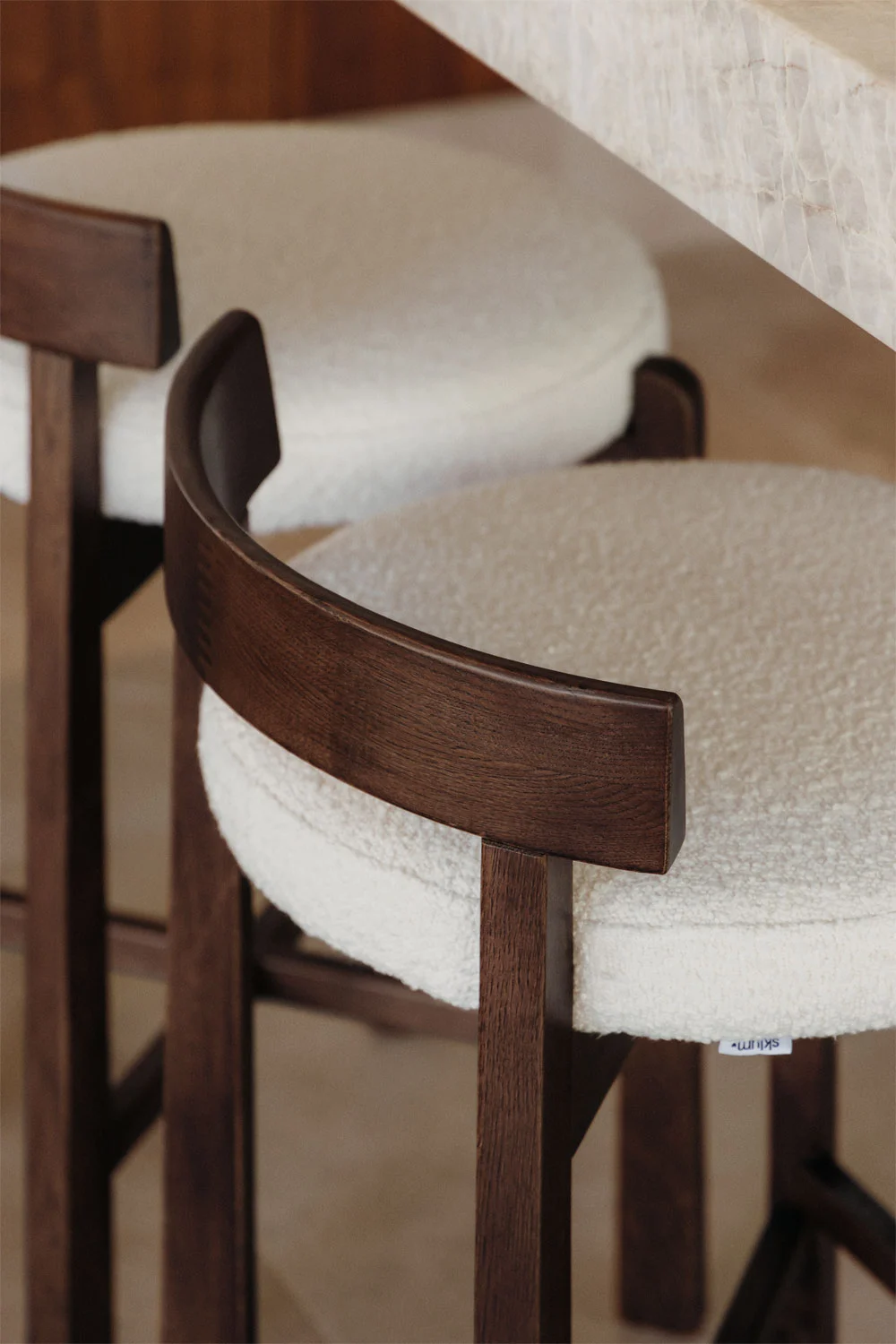 „Calmera“ baro kėdė iš ąžuolo masyvo su baltu bouclé audiniu – tai rafinuota elegancija šiuolaikiniam interjerui. Tvirta tamsaus ąžuolo konstrukcija dera su minkšta, vidutinio kietumo sėdyne, aptraukta prabangios tekstūros audiniu, suteikiančiu šviesos ir išskirtinumo pojūtį. Minimalistinis dizainas idealiai tinka barams, virtuvės saloms ir aukštiems stalams, kuriuose vertinamas stilius, komfortas ir kokybė.