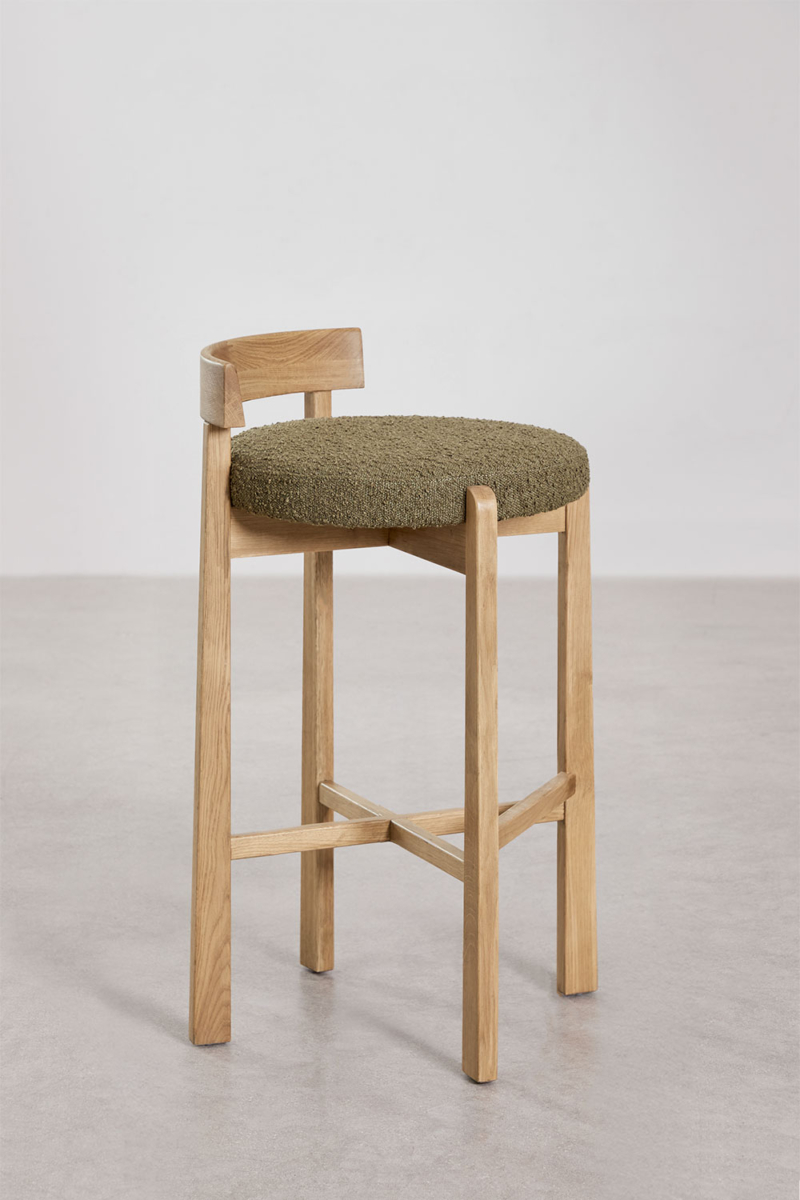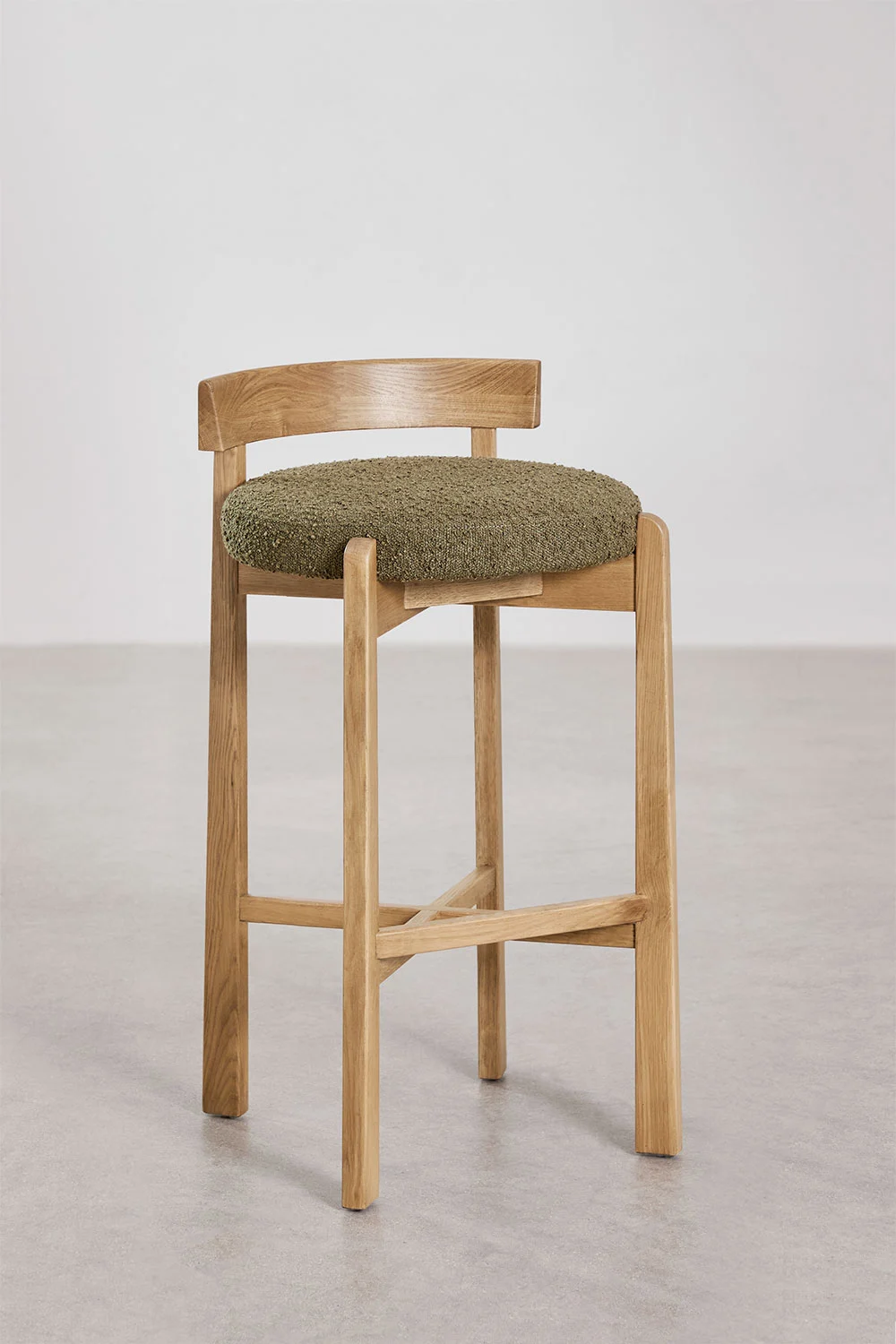 „Calmera“ baro kėdė iš ąžuolo masyvo – rafinuotas akcentas šiuolaikiniam interjerui. Tvirta natūralaus ąžuolo konstrukcija subtiliai dera su minkšta, vidutinio kietumo sėdyne, aptraukta žaliu bouclé audiniu, suteikiančiu baldui išskirtinį charakterį ir elegantišką prabangos pojūtį. Minimalistinis dizainas idealiai tinka barams, virtuvės saloms ir aukštiems stalams, kuriuose vertinamas stilius, komfortas ir kokybė.