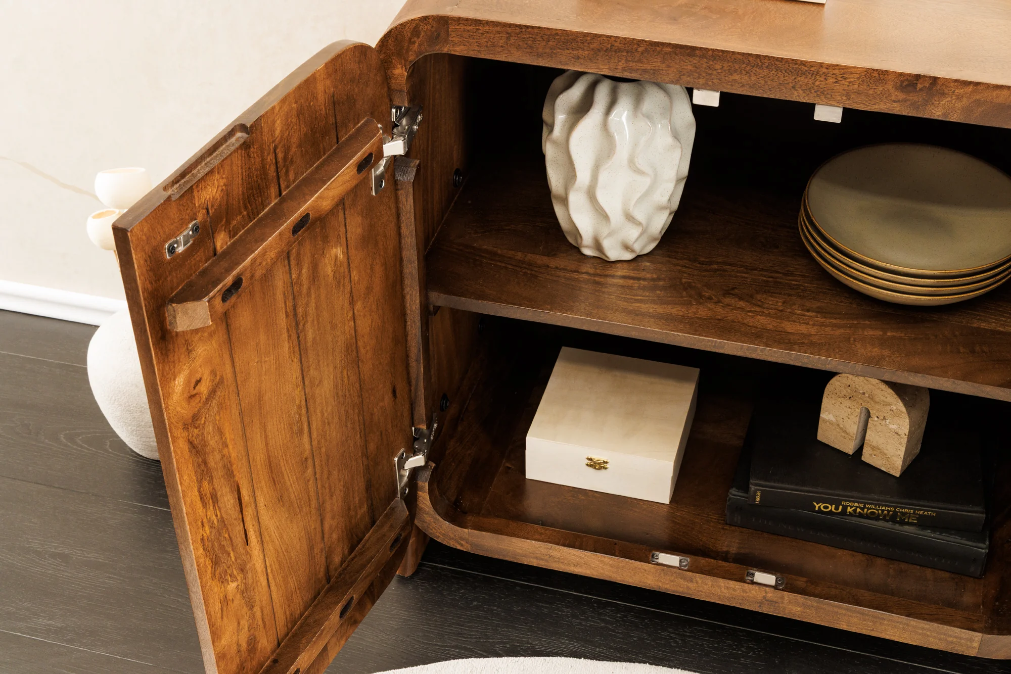 BRASIL žema komoda su turtinga mango medienos apdaila ir praktiška saugykla suteiks jūsų svetainei tropinio šilumos ir tvirto stiliaus. Puikiai tinkanti mažesnėms erdvėms, tai yra praktiškas atnaujinimas, kurio jūsų namai laukė.