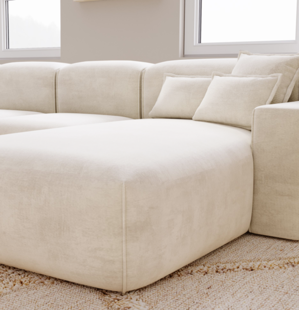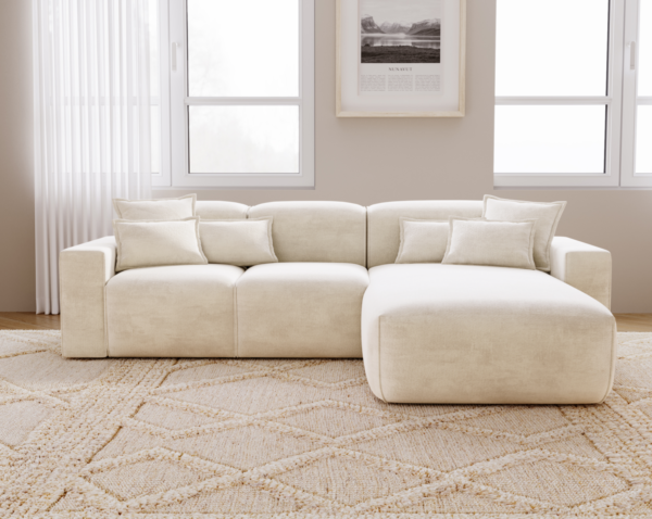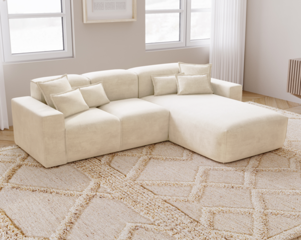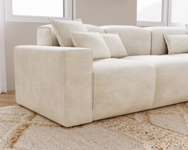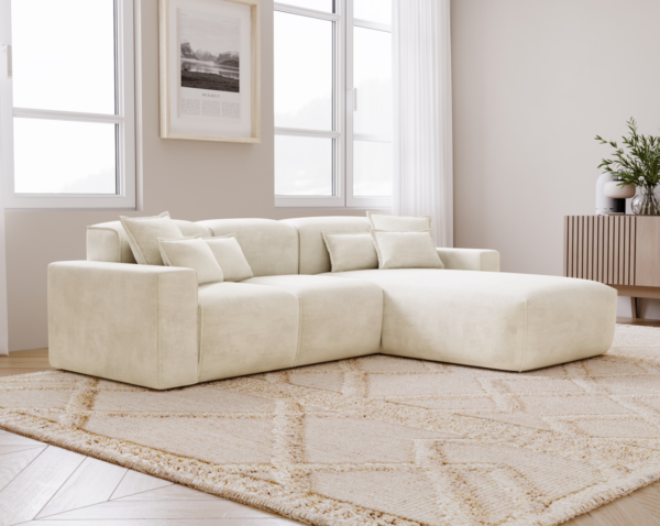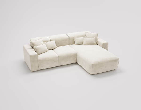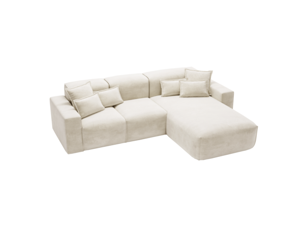 Modernus minkštas kampas be miegamos funkcijos, sukurtas išskirtiniam poilsiui ir stilingam interjerui. Patogios sėdimosios vietos, atramos iš silikoninių užpildų ir švelnus audinys suteikia jaukumą. Galima rinktis kairį arba dešinį išdėstymą.