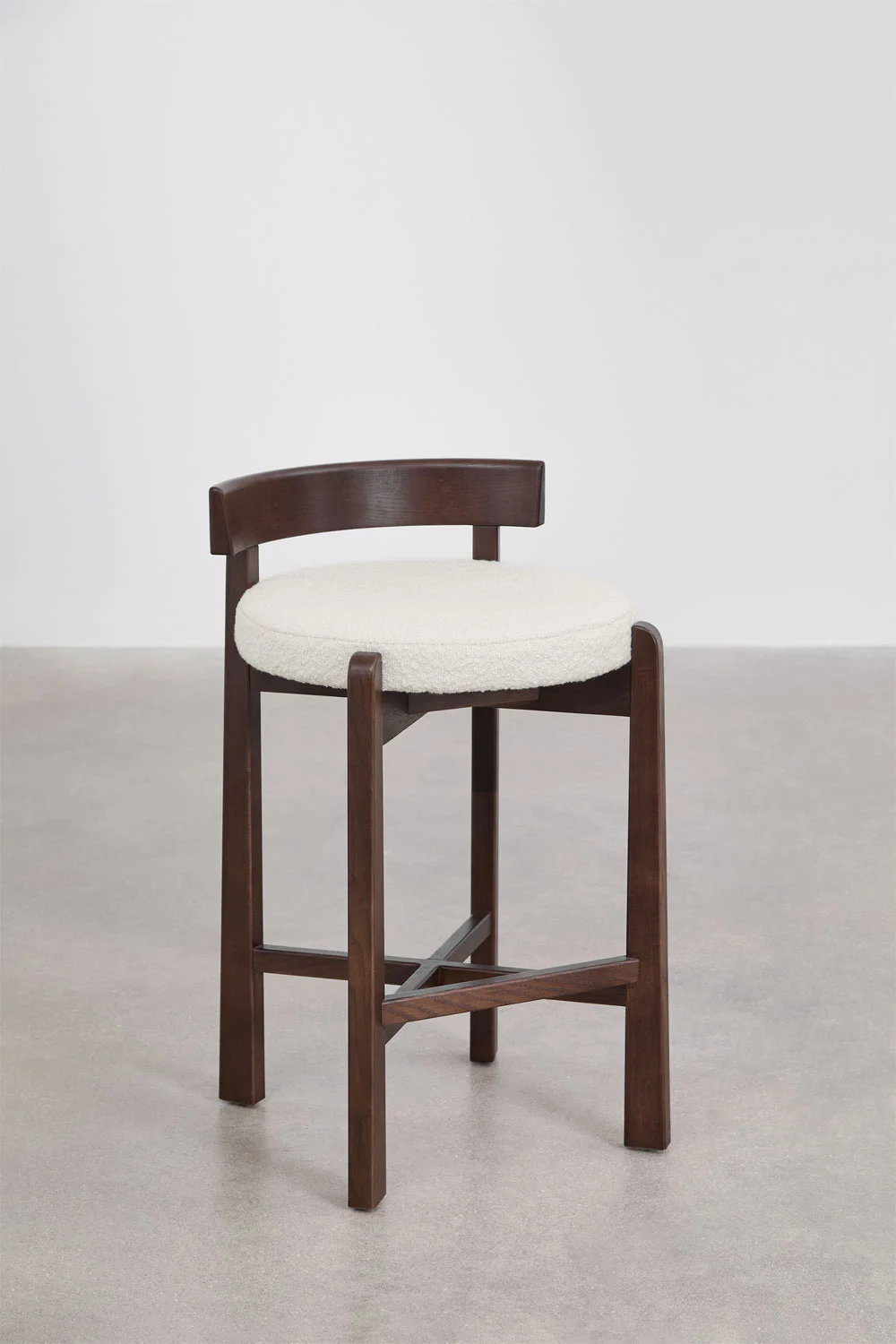 Minimalistinių formų pusbario kėdė „Calmera” sukurta taip, kad harmoningai papildytų aukštus stalus, barus ar virtuvės salas, suteikdamas erdvei lengvos prabangos pojūtį.