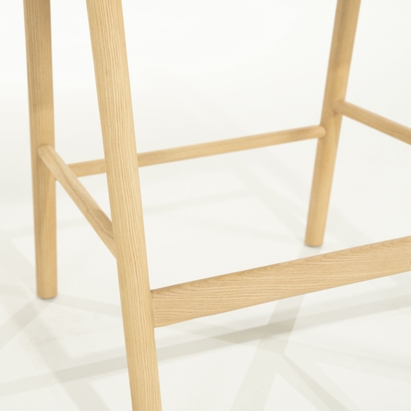 Stilinga ir patogi pusbario kėdė „Liora“ išsiskiria minimalistiniu dizainu ir natūralia medienos apdaila.