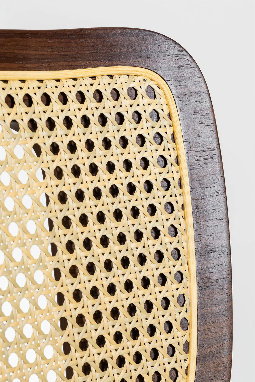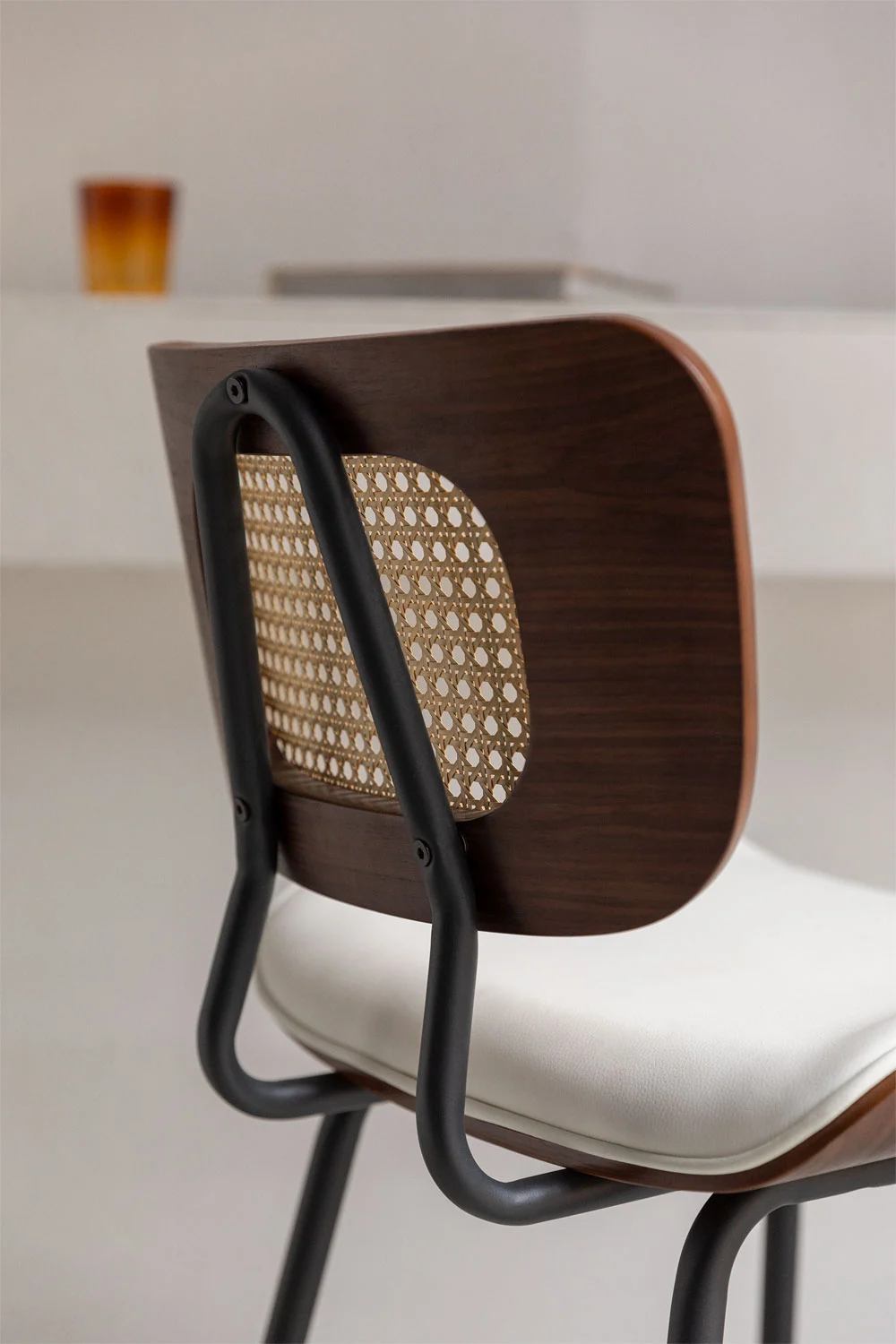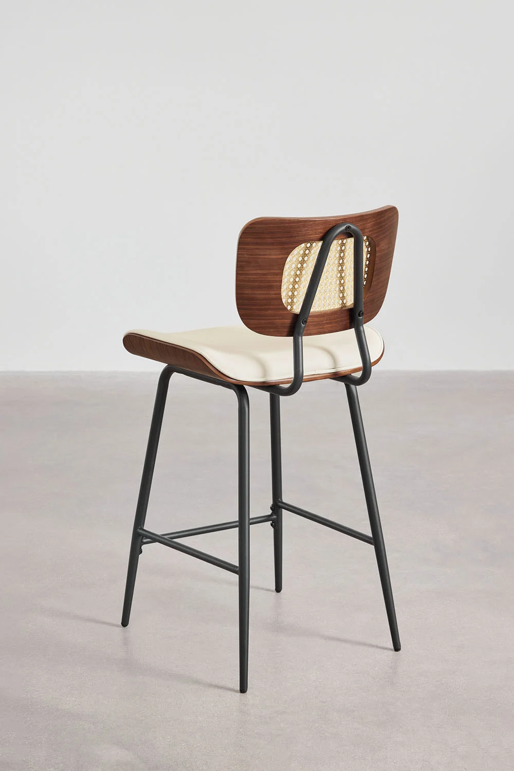 65 cm aukščio pusbario kėdė „Lunaro”, pagaminta iš tamsaus medžio, rotango ir balkšvos ekologiškos odos yra avangardinio dizaino, funkcionalumo ir stiliaus elementai. Dėl savo universalumo jis gali būti derinamas su įvairiais interjero stiliais.