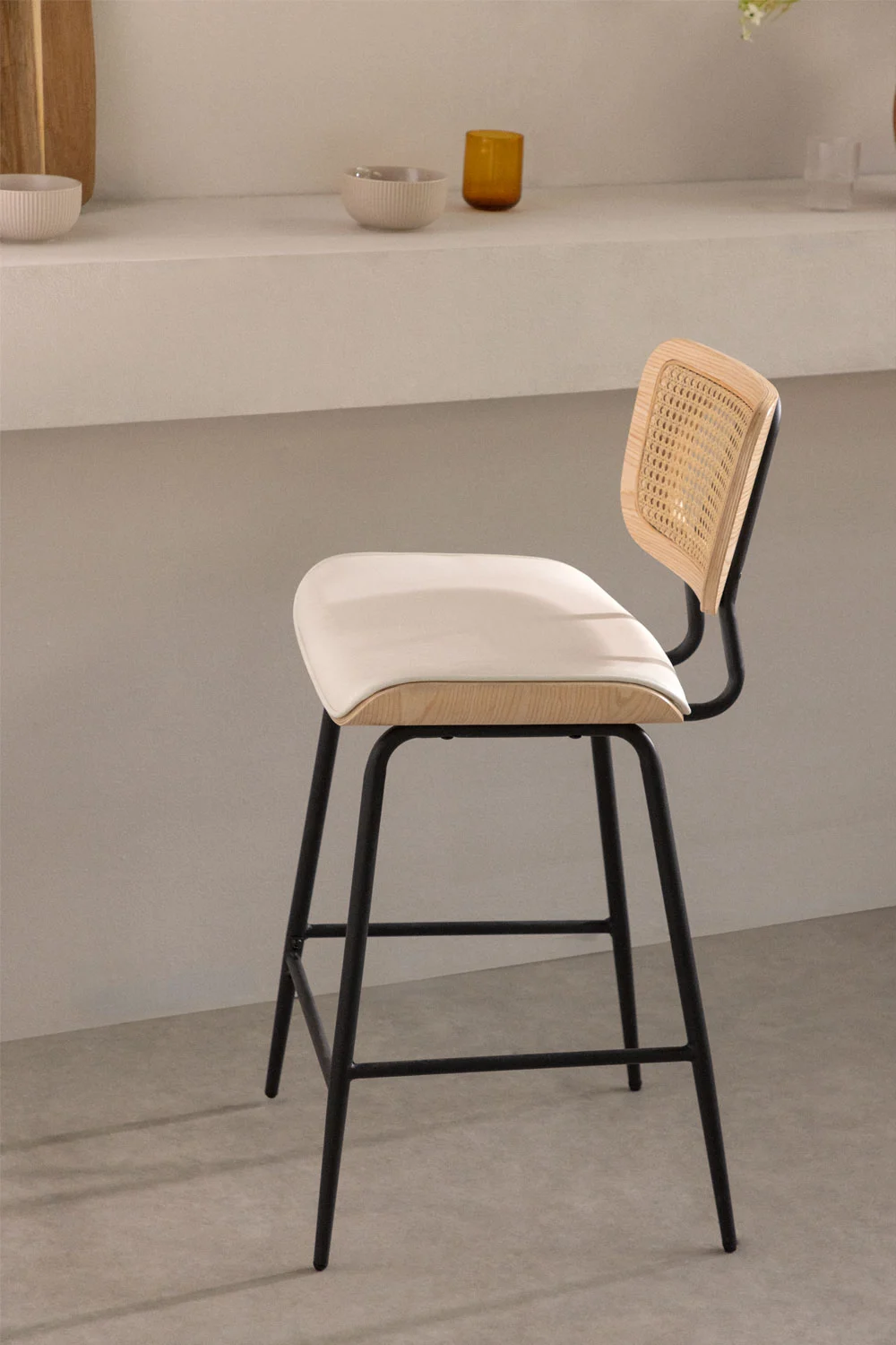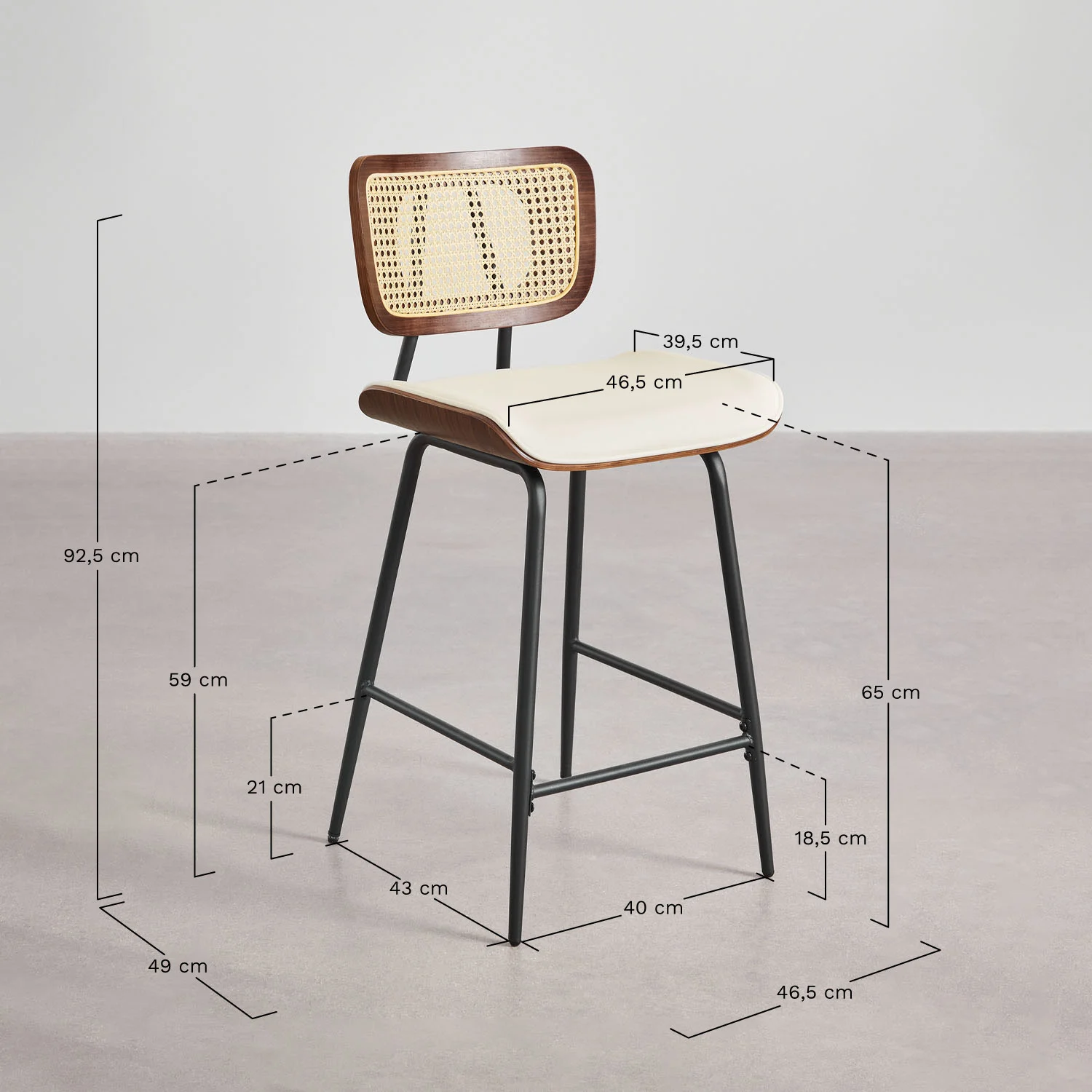 65 cm aukščio pusbario kėdė „Lunaro”, pagaminta iš šviesaus medžio, rotango ir balkšvos ekologiškos odos yra avangardinio dizaino, funkcionalumo ir stiliaus elementai. Dėl savo universalumo jis gali būti derinamas su įvairiais interjero stiliais.