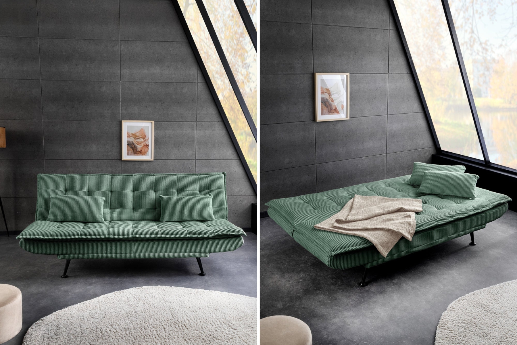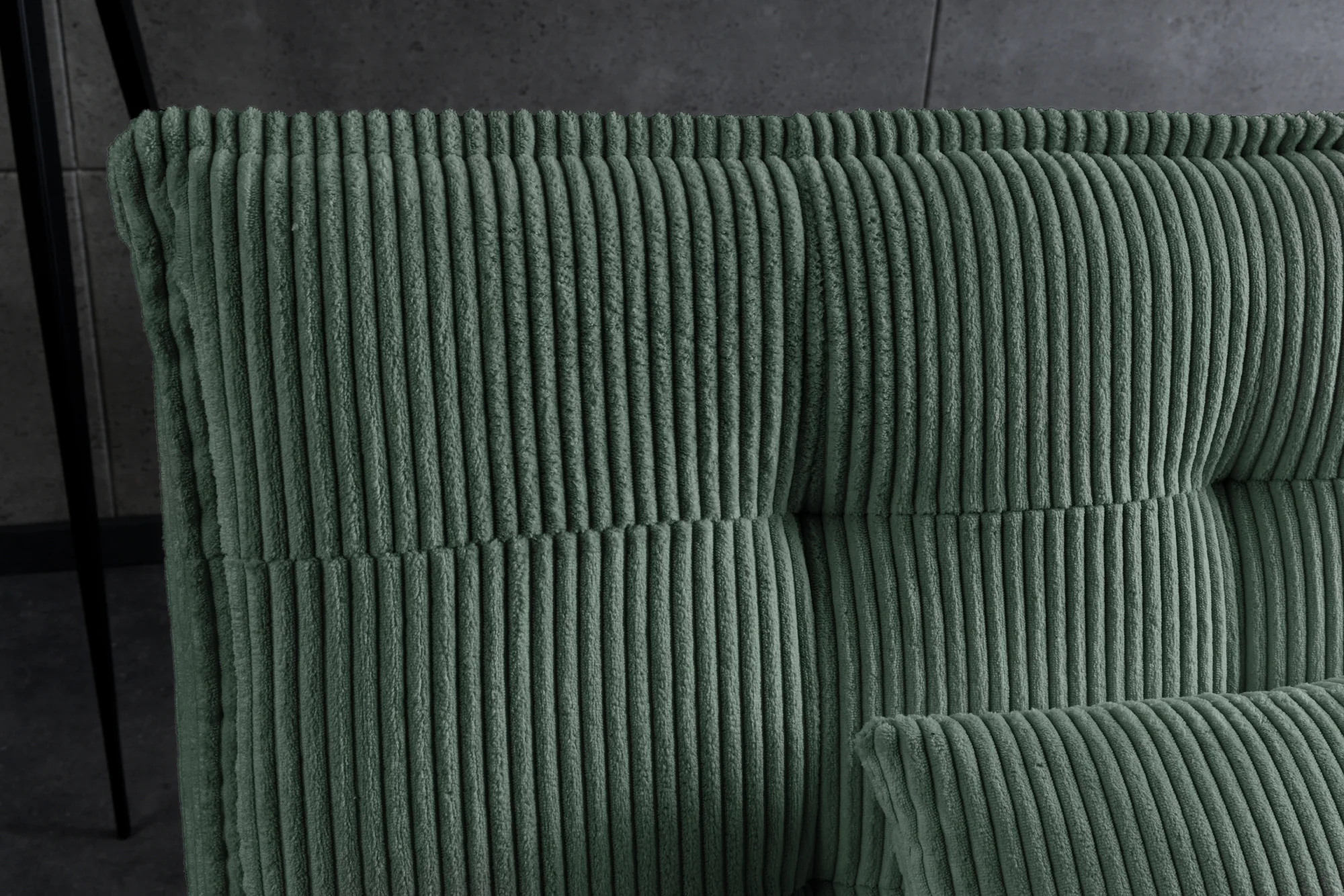 Pridėkite drąsaus akcento savo gyvenamajai erdvei su sodriai žalios spalvos JAZZ sofos-lova, sukurta išsiskirti ir tuo pačiu užtikrinti nepakartojamą komfortą. Minkšta kordine audiniu, tvirtu rėmu ir elegantiškomis juodomis kojomis JAZZ yra visapusiškas sprendimas poilsiui, svečių priėmimui ir viskam, kas tarp jų.