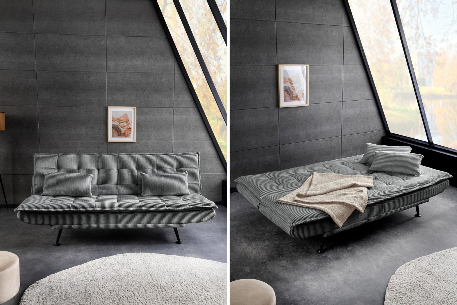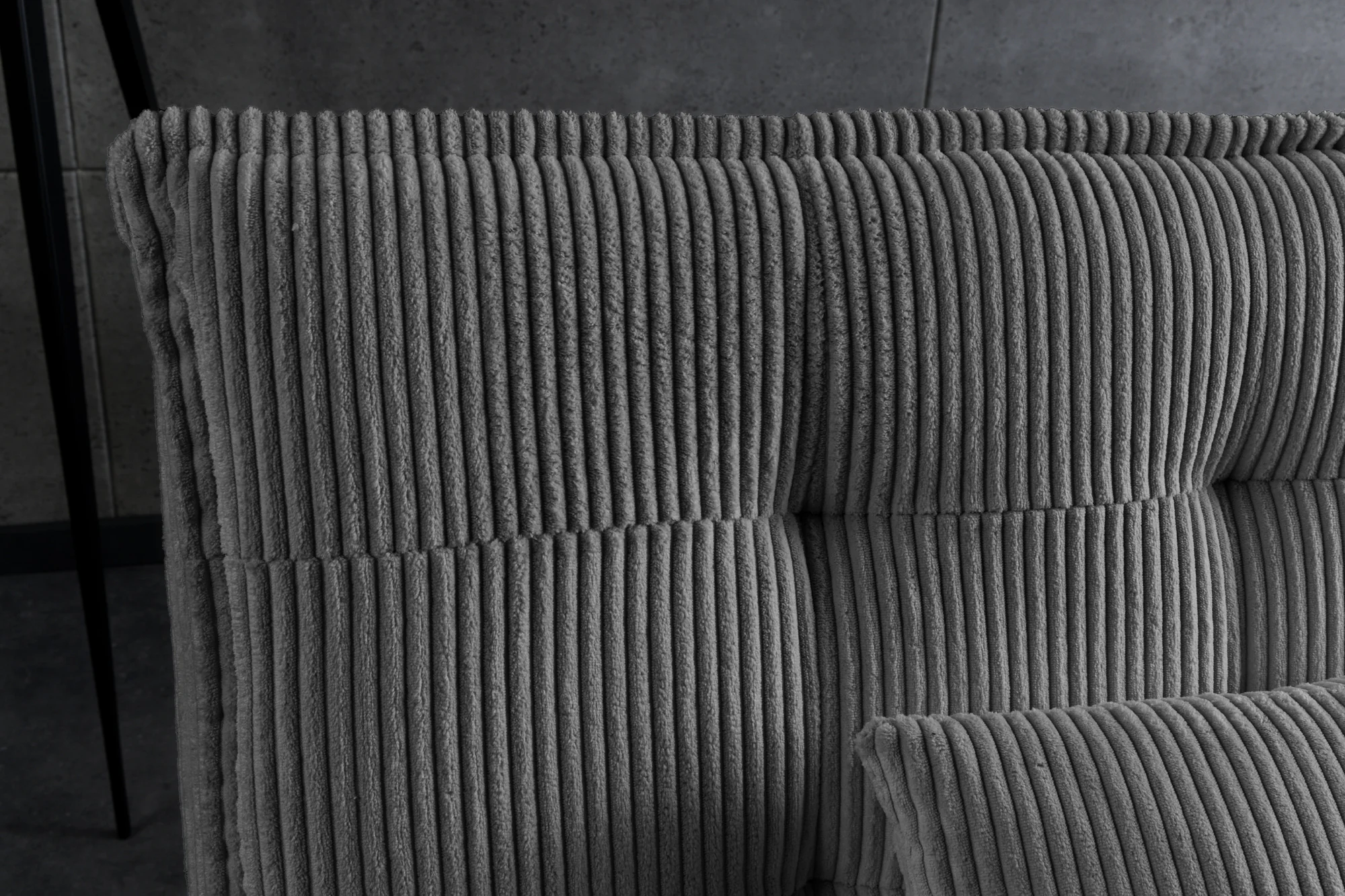 Išlikite stilingi ir universalūs su klasikinės pilkos spalvos JAZZ sofos-lova – puikiu stiliaus, komforto ir kasdienio funkcionalumo deriniu. Nuo atsipalaidavusio poilsio iki nakvynės, JAZZ užtikrina minkštą korduotą audinį, modernų dizainą ir patikimą ilgaamžiškumą.