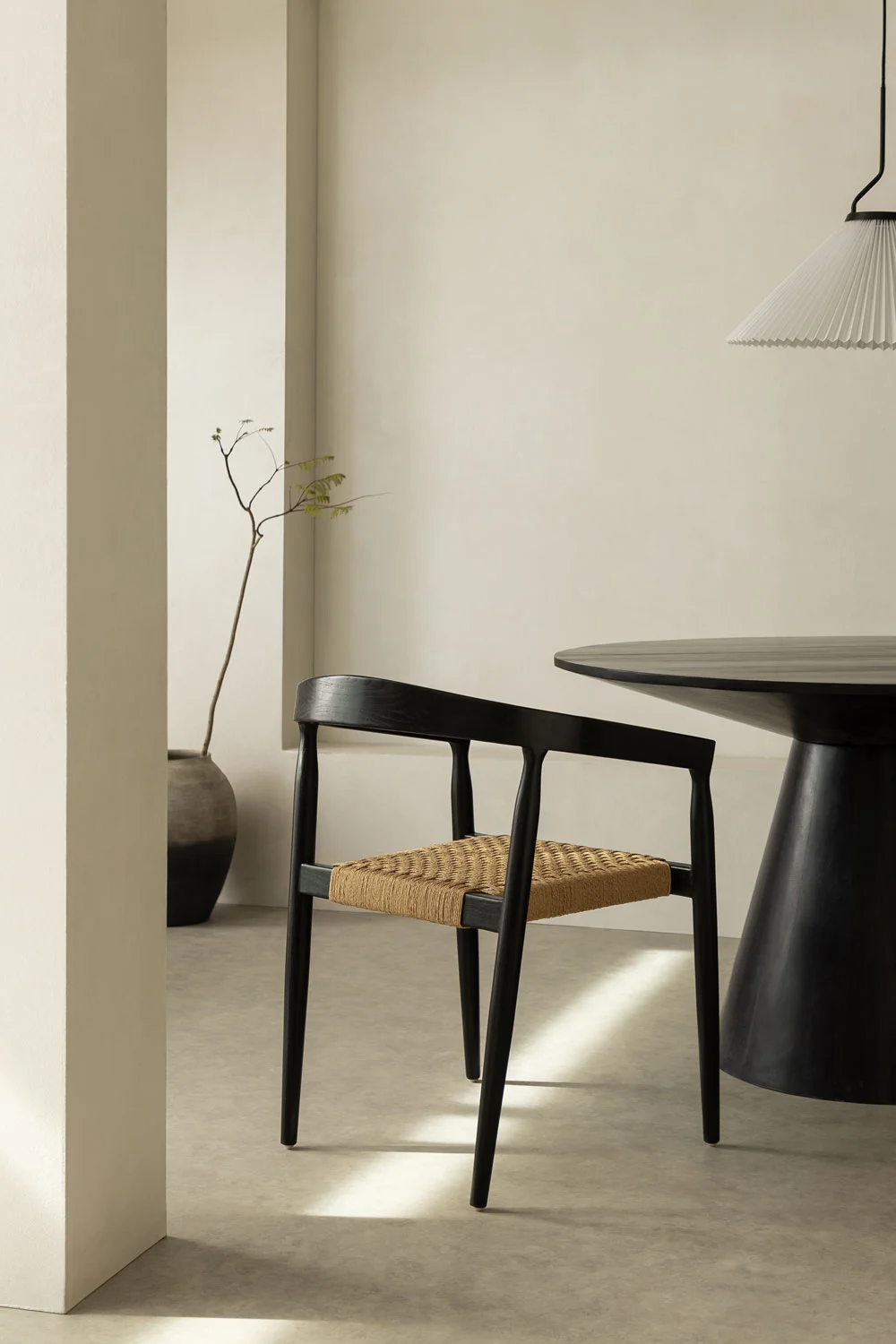 Tvirta, rafinuotai juoda medinė konstrukcija harmoningai kontrastuoja su pintos, šviesios spalvos sėdyne, kuri ne tik suteikia unikalų estetinį akcentą, bet ir užtikrina aukščiausio lygio komfortą. Šis baldas puikiai papildys prabangius, minimalistinius interjerus, kur vertinamas subtilus dizaino rafinamentas ir kokybė. Valgomojo kėdė „Bravio black“ – tai išskirtinio meistriškumo ir modernios elegancijos derinys.