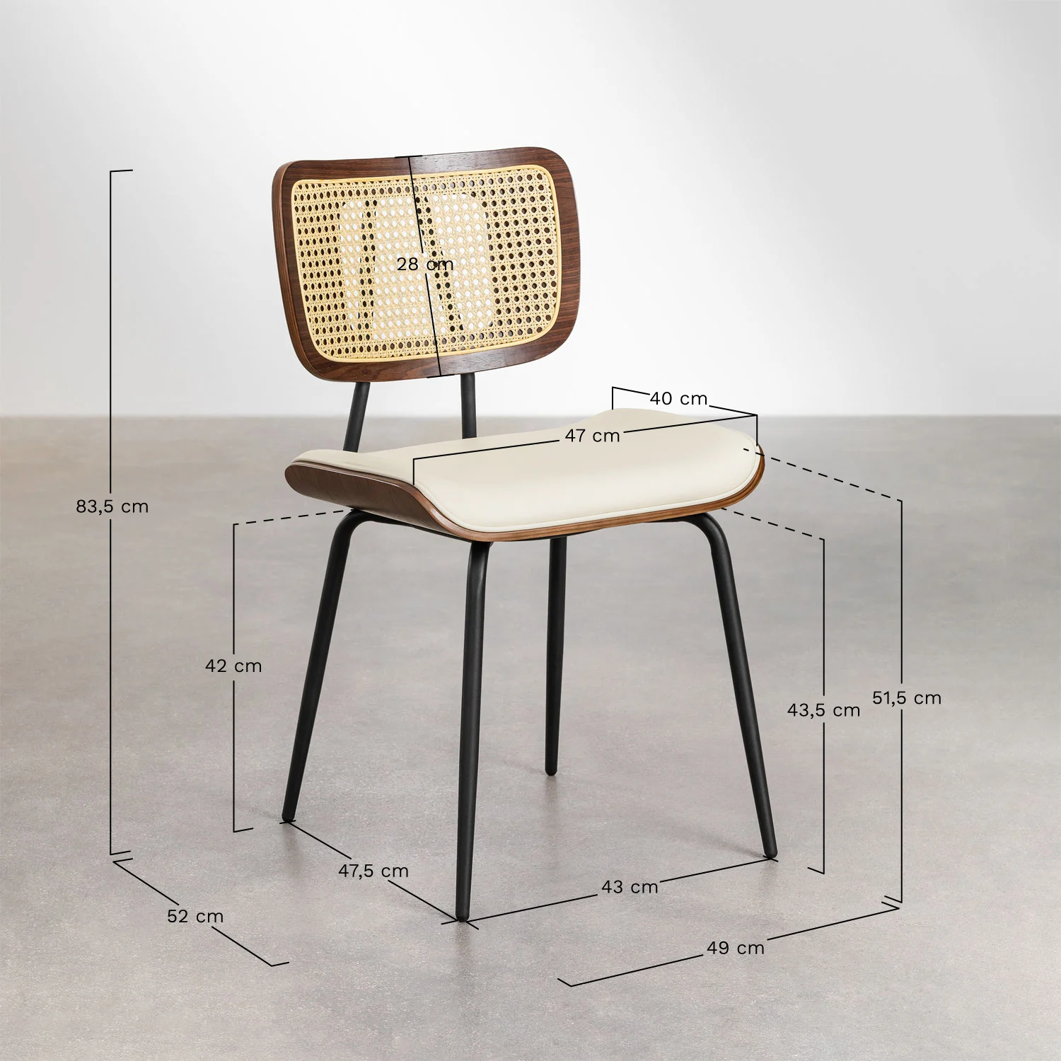 Medžio, rotango ir ekologiškos odos valgomojo kėdė „Raysa“ – labai įdomus ir universalus jūsų interjero papildymas. Ji pasižymi originaliu dizainu, pagaminta iš tuopos faneros ir plieninių kojų, todėl ši fantastiška kėdė yra labai patvari ir atspari. Jos formalus, bet modernus dizainas idealiai tinka norint sukurti šiuolaikiškesnę atmosferą jūsų kambariuose.